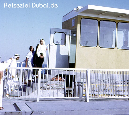 Seine Hoheit Scheich Raschid auf dem Weg zur Eröffnung der Hebebrücke am 29. März 1971, die er per Knopfdruck offiziell eröffnete.