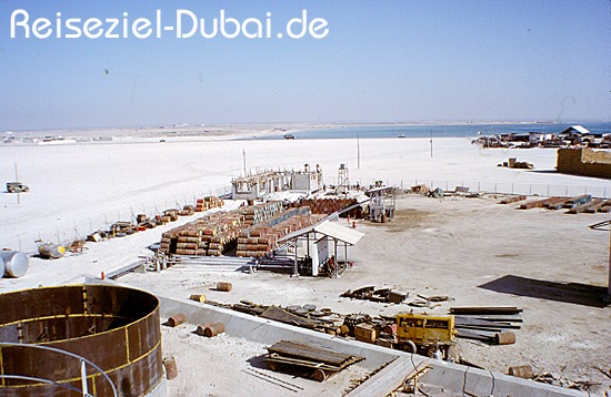 Blick in Richtung Dubai und bereits im Hintergrund (links von der Bildmitte) zu erkennen, der erste Wassertank.