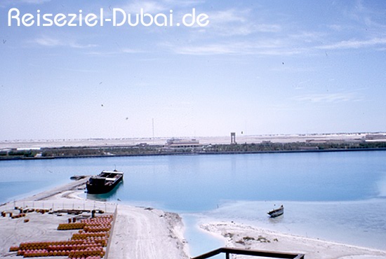 Der Creek bei Ebbe in Blickrichtung Abu Dhabi.