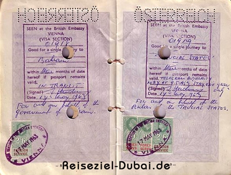 Ludwig Hejze: Meine erste Reise im Jahre 1963 in das damals unbekannte Emirat Dubai Am 22. Mai 1963 bin ich von Wien nach Dubai abgereist. Damit begann meine fast siebenjährige, in mehreren Teilabschnitten erfolgte Tätigkeit in Dubai für die österreichische Baufirma "Overseas AST". Damals benötigte man ein Visum.