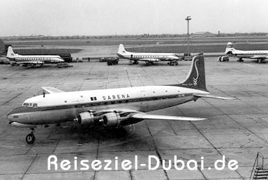Als die Zeit unseres Weiterfluges gekommen war, saßen wir immer noch alleine in dem Raum. Endlich kam eine Bodenstewardess die wissen wollte,wie wir in diesen Raum gekommen sind. Mein Kollege schwindelte, man hätte uns hierher gebracht. Leider war zu dieser Zeit mein Englisch sehr mangelhaft. Ich verstand fast nichts. Dann verlangte die Stewardess unsere Tickets und verschwand mit ihnen. Die Abflugzeit war schon da, aber wir saßen ohne Flugtickets alleine da. Nach einiger Zeit erschien die Stewardess, und sagte, dass wir sitzen bleiben sollten, wir würden abgeholt. 15 Minuten später erschien ein Mann am Ausgang und hat Ti -Ai -Ai gerufen. Mein Kollege reagierte nicht. Wir wollten ja nach Dubai. Doch da niemand sonst im Raum war, konnten nur wir gemeint sein. Wir vermuteten dann, dass Ti -Ai -Ai die Abkürzung für Trans Arabic Airwais sei. Wir sind dem Mann gefolgt, der uns wirklich zum richtigen Flugzeug brachte. Es war eine "DC-6-Turboprop-Maschine" mit österreichischen Stewardessen.