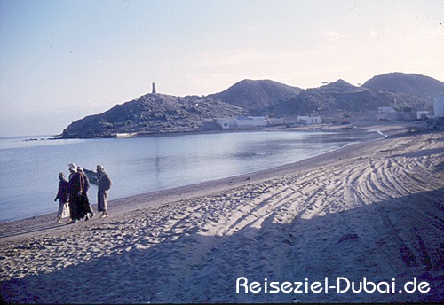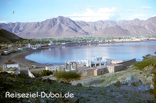 Im Hintergrund die Ortschaft Khor Fakkan im Dezember 1963.
