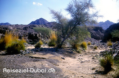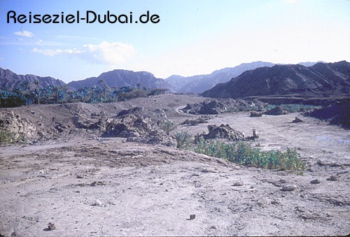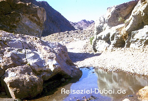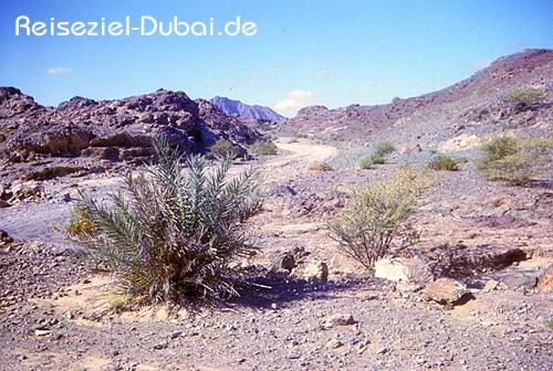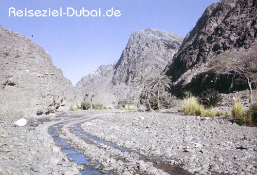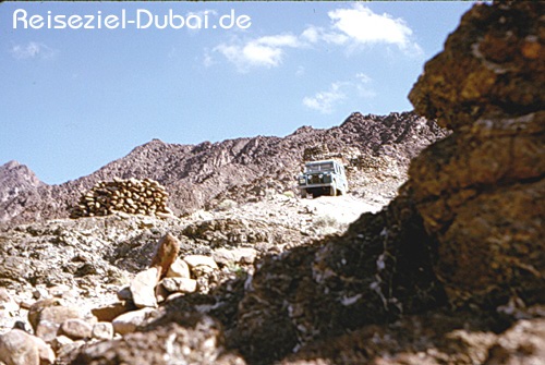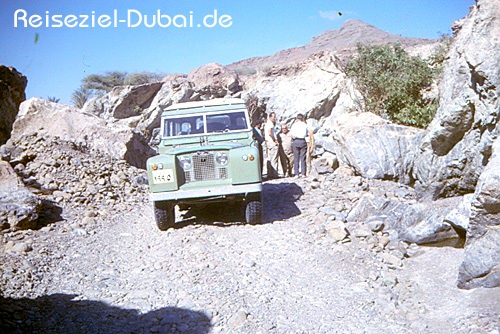 Es gab keine Straße wie man sie heute auch in den VAE kennt. Man musste sich auf eigene Faust einen Weg durch einen Wadi suchen, und nur stellenweise gab es kurze neben dem Wadi verlaufende Schotterpisten.