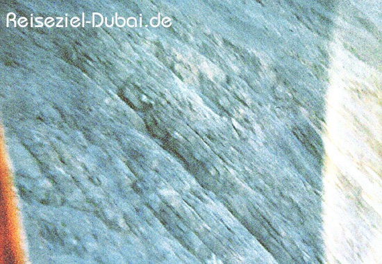 Nach einer Stunde hatten wir die imposante Bergkette überquert, vor uns lag die Wüste mit ihren verschieden geformten und gefärbten Sanddünen. Nach einer weiteren halben Stunde wurden die Motoren plötzlich gedrosselt. Die Maschine begann einen leichten Sinkflug.