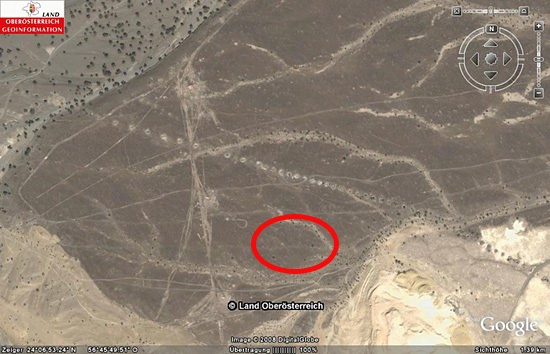 Kleine weiße Punkte markierten den Verlauf der unterirdischen Leitung, genannt "Falaj Qanat". Diese Punkte waren senkrechte Schächte, die alle 20 bis 30 Meter in den Boden gegraben wurden.