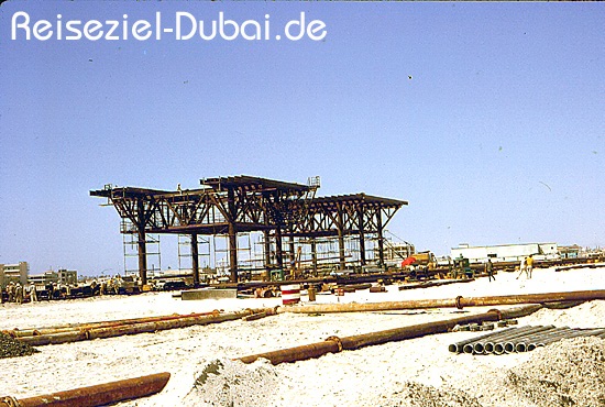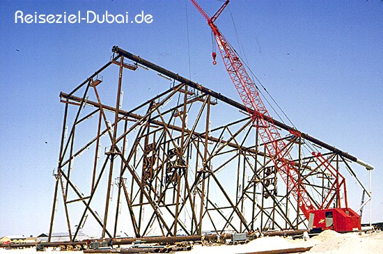 Wir hatten die Aufgabe, die Spundwände zu schlagen und den Creek in diesem Bereich auf drei Meter Tiefe auszubaggern. Das Ergebnis ist im Bild 130 wunderbar zu sehen. Der Transport der Türme durch Dubai war jedes Mal ein Ereignis, da sie um einiges höher waren als die umliegenden Häuser. Dem wäre heute nicht mehr so.