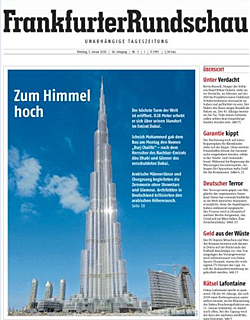 Die Eröffnungsfeier des höchsten Gebäudes der Welt begann mit einer kleinen Sensation, als Scheich al-Maktoum verkündete, dass der Burj Dubai ab sofort Burj Khalifa heißen werde. Damit hatte niemand gerechnet, dass der Herrscher von Abu Dhabi und Präsident der Vereinigten Arabischen Emirate Namensgeber für dieses sensationelle Bauwerk sein würde. Dieser Coup des Herrschers von Dubai ist ein Signal oder gar eine Botschaft an den Rest der Welt: Die Vereinigten Arabischen Emirate sind eine „Vereinigung von Brüdern“, die sich auch in schweren Zeiten zur Seite stehen, zum Beispiel mit zehn Milliarden Dollar. Zu Ende sind auch die Spekulationen über die Höhe des Turms: Es sollen genau 828 Meter sein, also noch vier Meter höher als ursprünglich vermutet.