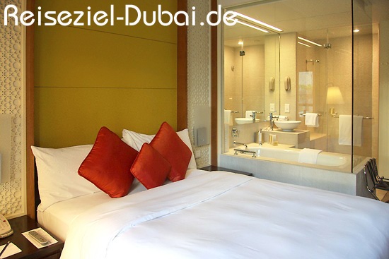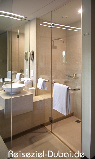 Deluxe Suiten Die „Deluxe Suiten“ befinden sich in Etagen drei, vier und fünf. Jede der „Deluxe Suiten“ hat eine eigene Eingangshalle, die in den großen und luxuriösen Wohnbereich führt, in dem sich ein Sofa, zwei Sessel und ein Groß-Bildschirm befinden. Vom Wohnbereich aus betritt der Gast das Schlafzimmer, mit einem King-Size-Doppelbett, Großbild-Fernseher und daneben ein separater Ankleideraum und das Badezimmer, das wie bereits beschrieben ausgestattet ist. In der dritten Etage verfügen die Suiten über eine 17x8-Meter-Terrasse mit Sicht auf den Pool, die mit Tisch und Stühlen aus Korbgeflecht bestückt ist - ideal für eine abendliche Privat-Party. Urlaub im „Qamardeen“ ist Urlaub für Gäste, die das lebendige Dubai hautnah erleben möchten und trotzdem auf einen Ruhepool nicht verzichten möchten. Nur zehn Kilometer von Flughafen und Strand entfernt findet der Urlauber im „Qamardeen“ alles, was er von einem Luxus-Hotel in Dubai erwartet.